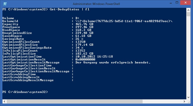 Start-DedupJob –Volume [LW-Buchstabe]: –Type Optimization