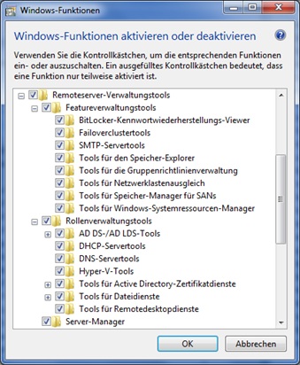 12. Systemsteuerung à Programme und Funktionen à Windows-Funktionen aktivieren oder deaktivieren à die gewünschten RSAT-Features auswählen und mit Klick auf „OK“ installieren, in meinem Fall habe ich gleich alle Tools ausgewählt
